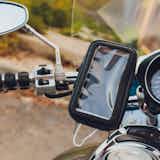 ナビなどでスマートフォンを使用したい方におすすめなのが、『アクアランド』のスマホホルダーです。雨や塵から守るために全体を覆えるケースに入れて使用し、前面はタッチパネルに対応しているので、スマートフォンを汚さずに操作ができます。