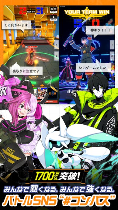 『#コンパス〜戦闘摂理解析システム〜』は、3分間で勝敗が決まる陣取りバトルとSNS感覚の交流が融合した、テンポ重視の国産MOBAです。
