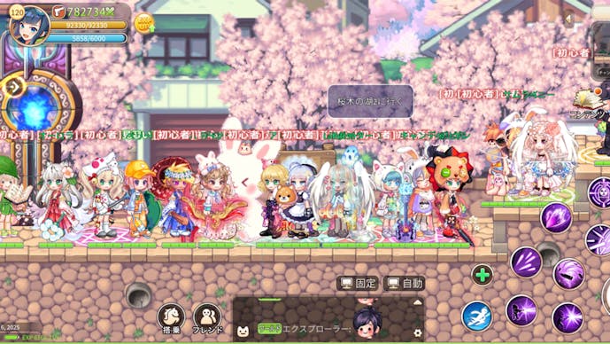 ギルドやパーティ募集掲示板が常時賑わっており、ログイン直後から最大30人規模のプレイヤーとチャットで交流できます。