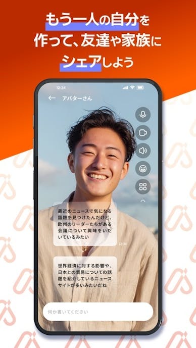 24人のバーチャルコンパニオンから選ぶか、写真1枚で自分好みのアバターを作って話せます。