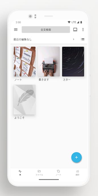 アプリを開くと、余計なメニューのない全画面で即執筆を開始できます。