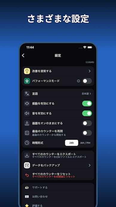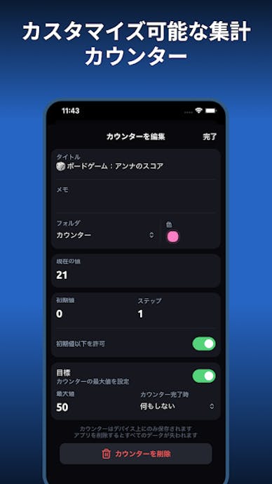 毎日の習慣を見える化して継続したいセルフマネジメント派にぴったりの、多用途カウンターアプリです。