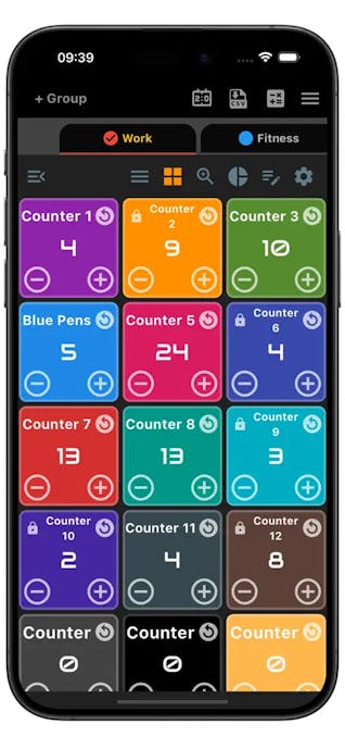各カウンターに名前と色を設定して一覧表示できるため、複数の記録を一目で整理できます。
