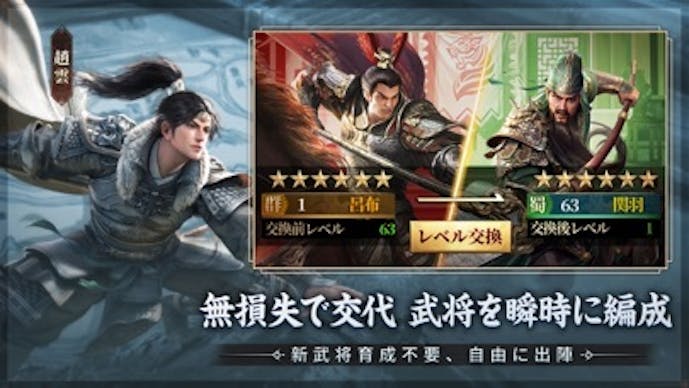 武将の編成や育成も手軽で、兵士はワンクリックで整備や自動徴兵が可能。