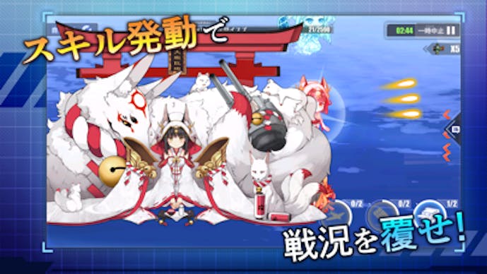 『アズールレーン』は、艦船を擬人化したキャラクターを編成し、横スクロール形式で弾幕をさばきながら敵艦隊を撃破するシューティングRPGアプリ。