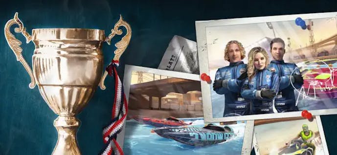 爆音と噴射炎で一気にテンションが上がる爽快感! 水上のスプリント勝負が熱い競艇ゲーム |