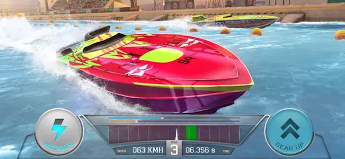 『Top Boat』は、時速300km超のボートで直線勝負に挑む本格レースシミュレーターです。