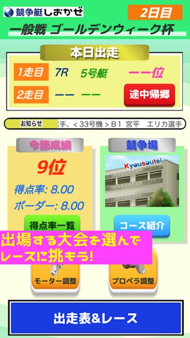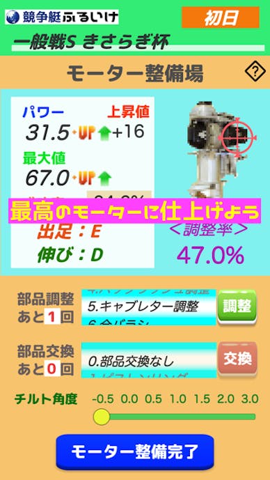 スピードとチューニング、両方の快感を求めるメカ好き競艇ファンにぴったりのアプリです。
