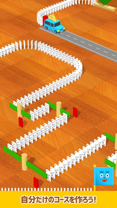 木製タイルをドラッグし、ルートが完成したら再生ボタンを押すだけでOK。