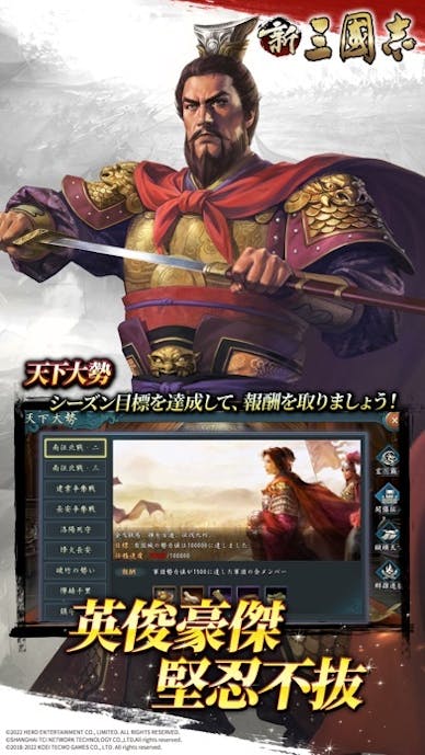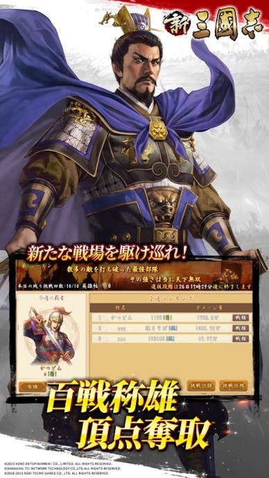 『新三國志』は、コーエーテクモ完全監修の育成型戦略シミュレーションゲームアプリ。
