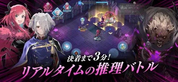 3分で決着する3人マッチのバトルで、仲間に紛れた裏切り者を見抜く駆け引きが魅力です。