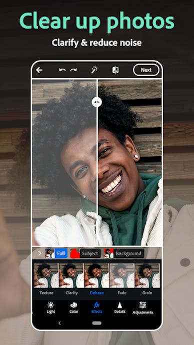 第5位. Photoshop Express:ノイズ除去が優秀でプロみたいに仕上がる!赤目補正や目をつぶった写真を自然に加工できるアプリ