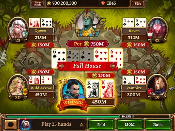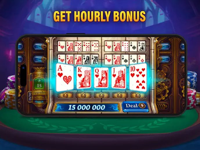 迷った時は、ポーカーにも搭載されているヒント機能が最適手を教えてくれるため、初心者でも理論を学びやすい仕様です。