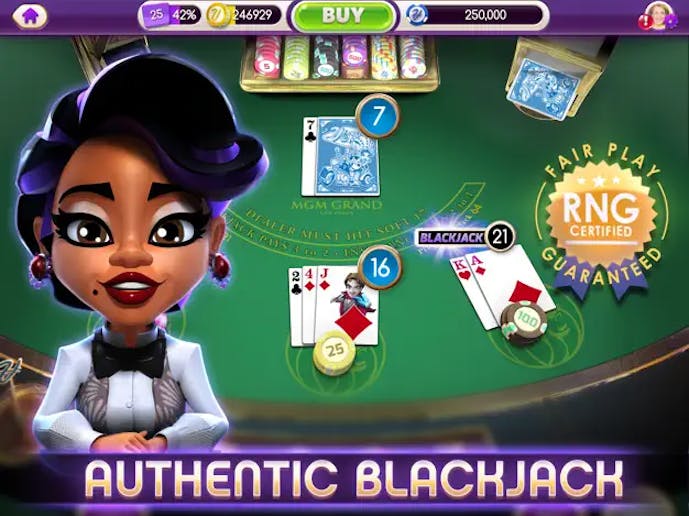 ブラックジャックアプリのおすすめ4. myVEGAS Blackjack:実在のカジノを再現したテーブルで臨場感がすごい!本場の空気を味わえるブラックジャックアプリ