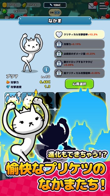 敵を倒すことで可愛いモンスターたちはレベルアップし、新たな能力を開放していきます。