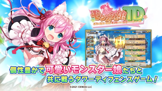 『モンスター娘TD』は、モンスターの女の子“モン娘”たちと共に拠点を守る、タワーディフェンス型のモンスター育成シミュレーションアプリ。