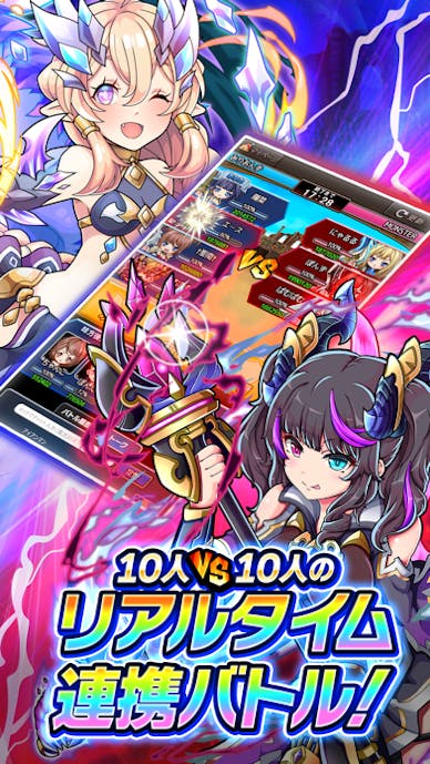 最大10名対10名のリアルタイム共闘バトルは、戦略的な思考とチームワークが試され、手に汗握る白熱バトルになること間違い無し。