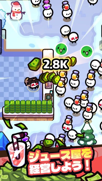 数時間放置して戻ると倉庫がジュースで溢れ、一気に設備を拡張する爽快感が味わえます。