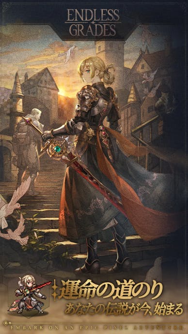 『グランサガポケット: KNIGHTSxKNIGHTS』は、人気スマホRPG「グランサガ」の世界観を継承した放置系RPG。
