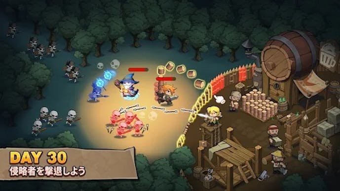 あとはアプリを閉じている間に素材や資金がどんどん蓄積され、帰宅後に村や英雄を一気に強化できる“オフライン報酬”が魅力です。
