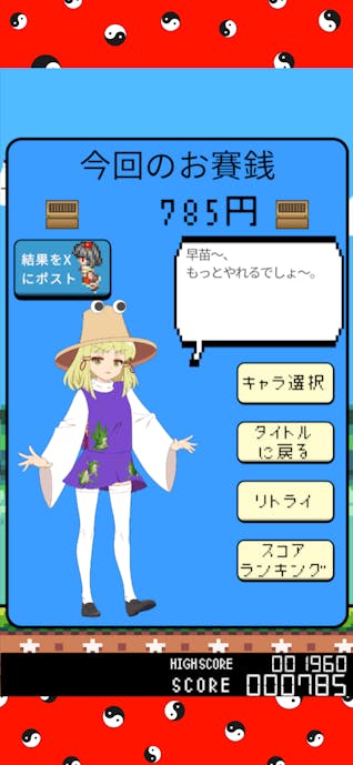 プレイヤーは見習い陰陽師として、社殿や鳥居を建て直しながら、境内に参拝客を呼び戻していきます。