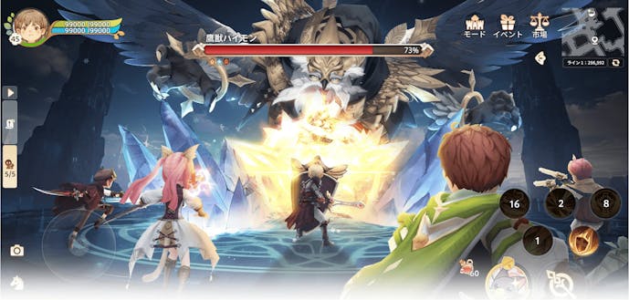 巨大魔神ダンジョンや5万人同時参加のサーバー共闘など、スケールの大きな戦いも用意され、やり応えのある冒険を楽しめます。