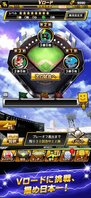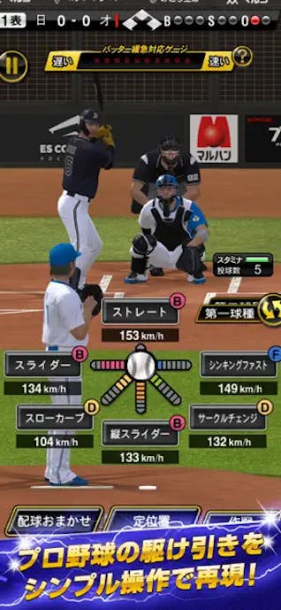 投球はフリック、打撃はタップでタイミングを合わせるだけの簡単操作だから、外出先での待ち時間中もサクッと遊べますよ。