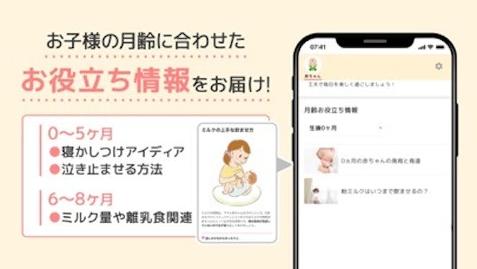 毎日届く専門家監修のメッセージや記事では、授乳中の体調管理や赤ちゃんの成長に役立つ情報を手軽にチェック可能。